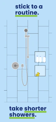 Take long showers? Help yourself take shorter showers by using a shower timer that will help you pace yourself and improve over time!