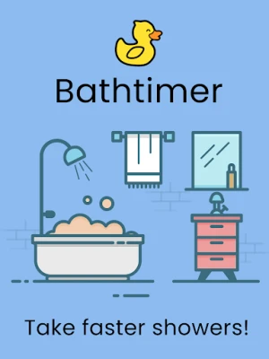 Bathtimer (aka Bath timer) is a shower timer that helps you take shorter showers. It’s not just a shower timer - it’s a shower interval timer! Shorter showers not only save you time, but also water. If you want to save some money, or if you live in a region impacted by drought, try adding a shower timer to your shower!