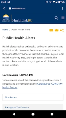 • View the Health Alerts posted on the HealthLinkBC website from within the app