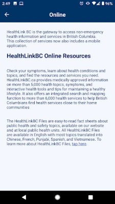 • Visit the HealthLinkBC website within the app or within your mobile browser