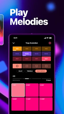 Create epic melodies with keys, combine them with sound loops. Use pads to practice your finger drumming skills. Share your own music anywhere you like.