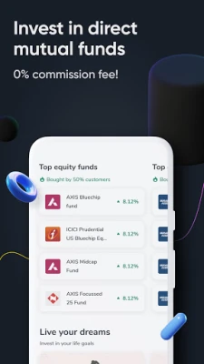 Invest in free direct mutual funds: With BLACK, you can invest in all kinds of mutual funds, such as large-cap funds, small-cap funds, ELSS funds, liquid funds, debt mutual funds, high-performance funds and balanced funds. You can even choose to invest either in lump-sum funds or via a systematic investment plan.
