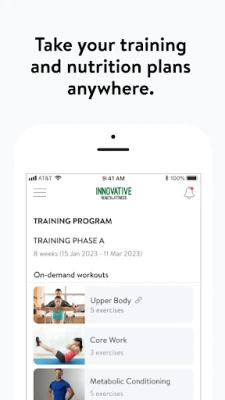 With the Innovative Health App, you can start tracking your workouts and meals, measuring results, and achieving your fitness goals, all with the help of your personal trainer.
