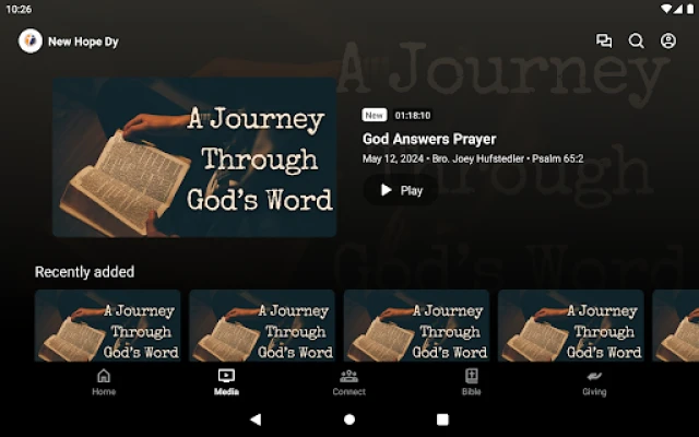 This app will help you stay connected with the day-to-day life of New Hope Baptist Church. With this app you can: watch or listen to past messages; stay up to date with push notifications; share your favorite messages via Twitter, Facebook, or email; and download messages for offline listening.