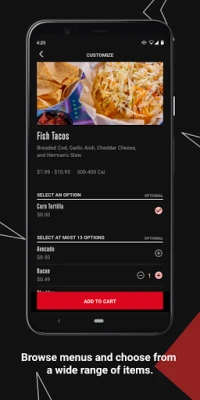 How it works: 1. Download the app 2. Customize your meal 3. Specify your time of pick-up or delivery 4. Add your meal to your cart to proceed to checkout and earn rewards.